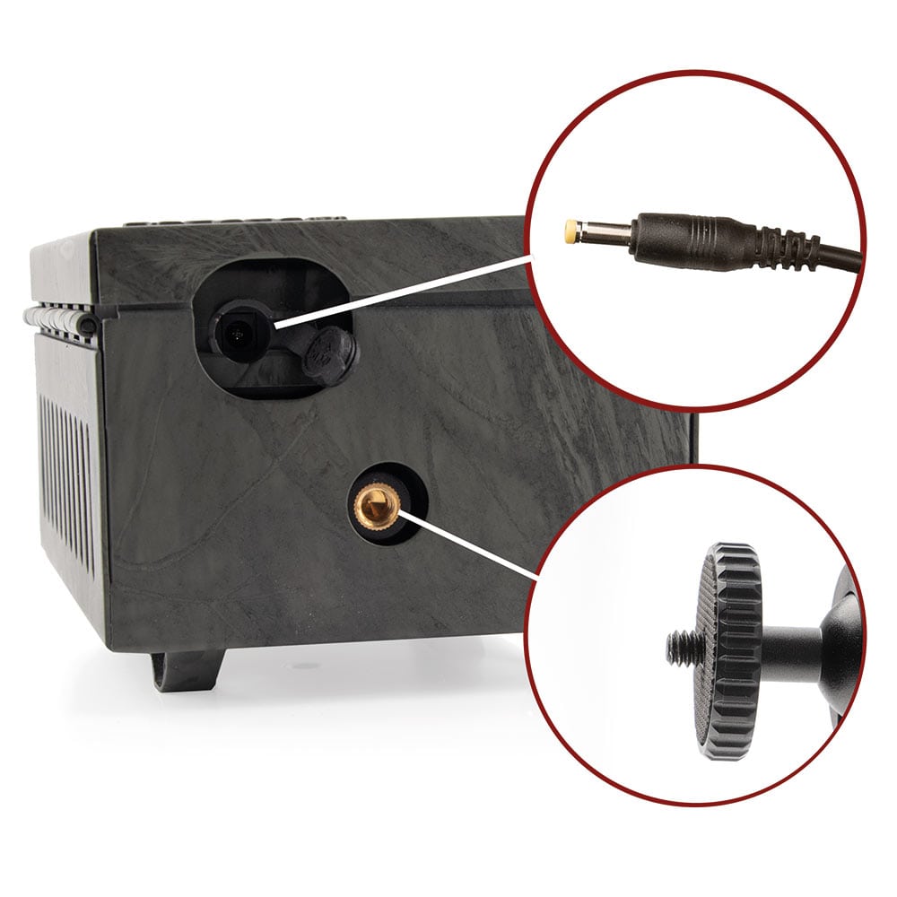 Das Metallgehäuse kannst Du auf verschiedene Weise befestigen. Auf der Rückseite befindet sich eine 1/4-Zoll-Gewindeöffnung, sodass es mit Stativ-Halterungen an Bäumen oder anderen Objekten montiert werden kann. An der Rückseite befinden sich Ösen, um das Gehäuse mit einem Kabelschloss zu befestigen. Alternativ kann das Metallgehäuse mit einer passenden Schraube mit Standardgewinde direkt in entsprechende Oberflächen geschraubt werden.