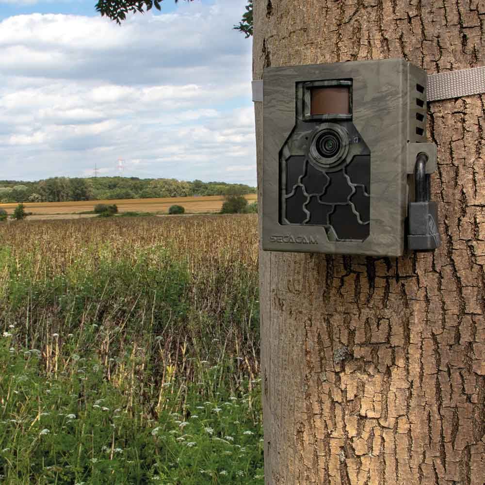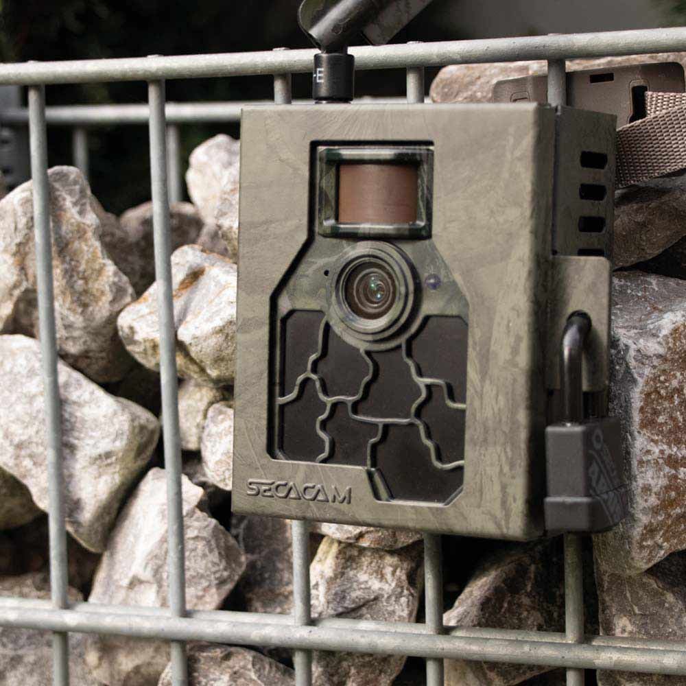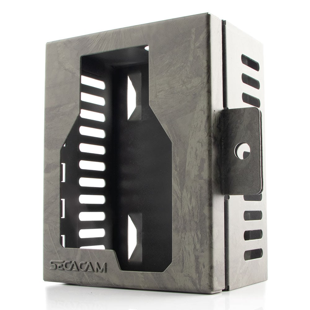 Der Schutzpanzer für Deine SECACAM 5000 Explorer: Das SECACAM Metallgehäuse 5000 Explorer ist gegen Wind und Wetter geschützt und sichert Deine Kamera durch eine Wand aus Stahl in grüner Tarnoptik.
