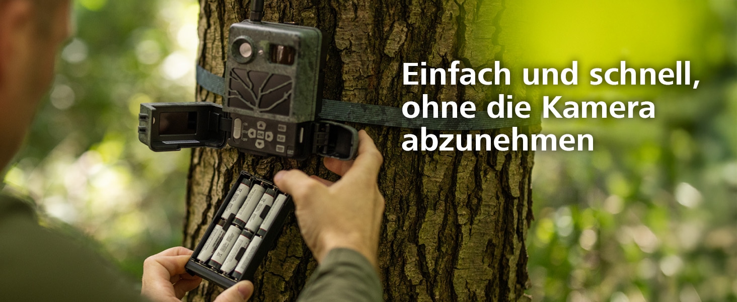 Bereite das zusätzliche Batteriemagazin einfach zu Hause vor, indem Du es mit acht vollgeladenen Akkus oder frischen Batterien bestückst. Am Einsatzort kannst Du das leere Batteriemagazin in Deiner Wildkamera einfach herausnehmen und durch das vorbereitete Batteriemagazin ersetzen. So sparst Du wertvolle Zeit und musst nicht vor Ort einzelne Batterien wechseln – ein besonders praktischer Vorteil für lange Einsätze in der Natur.